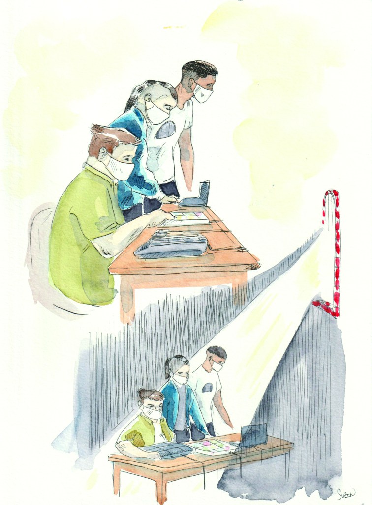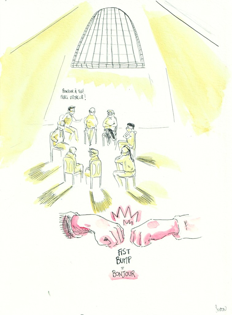 Pourquoi ? Car dans ce lieu si particulier, pas de photos et sécurité maximum. Donc comment communiquer sur ce projet pourtant important ? Eh bien on dessine !