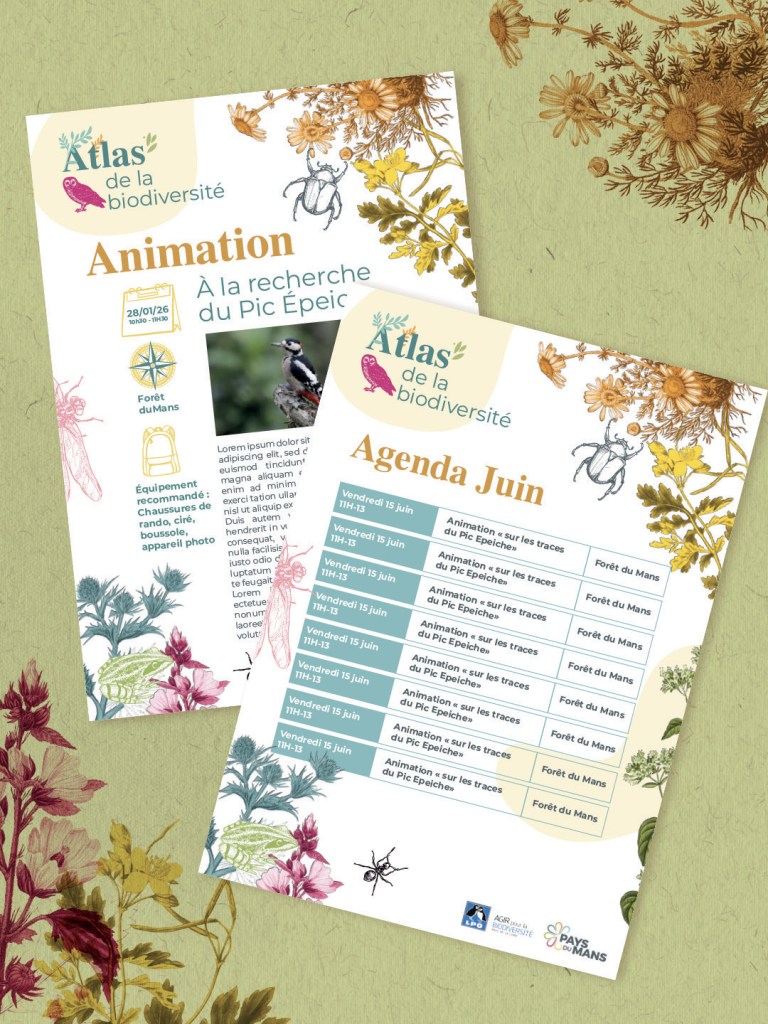 Retour sur un projet réalisé pour Pays du Mans Tourisme : la création d’une identité visuelle dédiée à l’Atlas de la biodiversité. L’objectif était de concevoir un univers graphique capable de valoriser la richesse naturelle du territoire tout en restant clair, pédagogique et facilement déclinable.