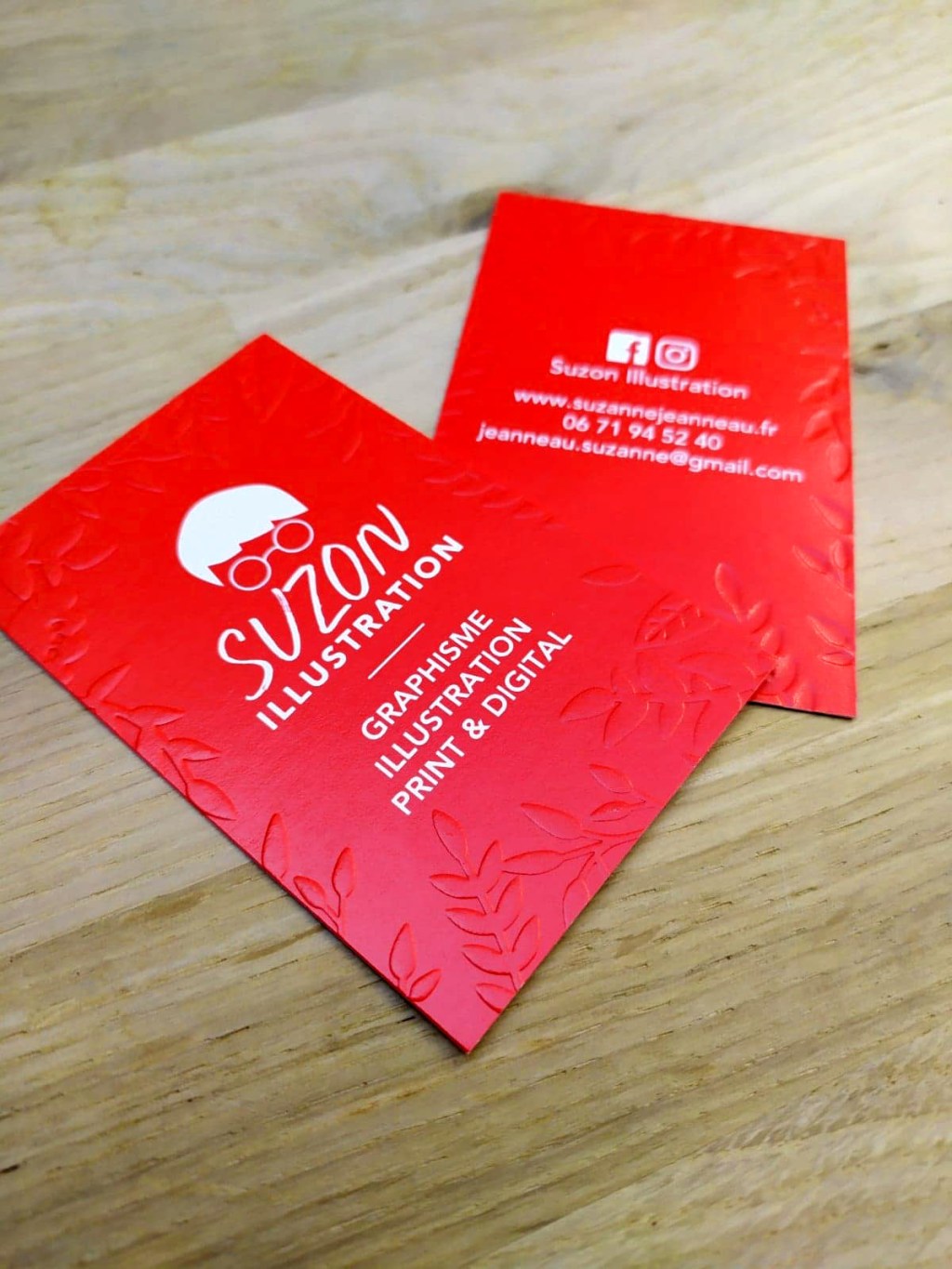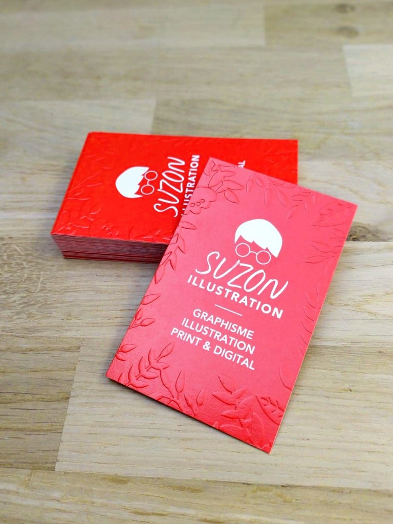 Ici, je suis partie sur une carte de visite sobre avec un embossage délicat sur de petits éléments floraux pour ajouter une touche d’originalité, à l’image de mon travail.