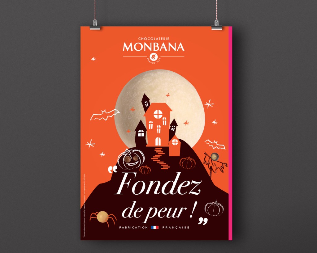 Conception et création de la charte graphique d’Halloween 2019 pour la Chocolaterie MONBANA, de l’ensemble des supports de communication aux packagings.