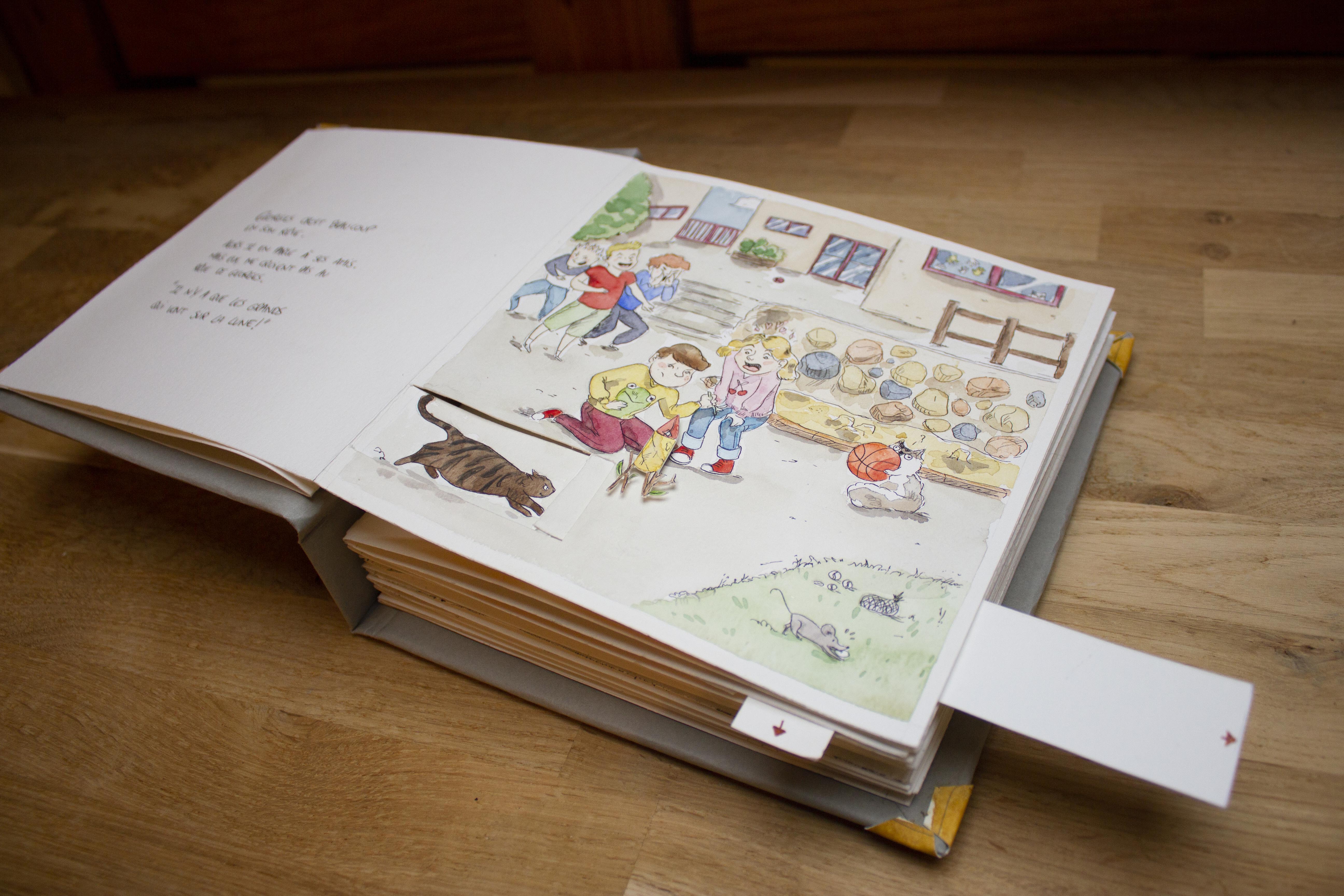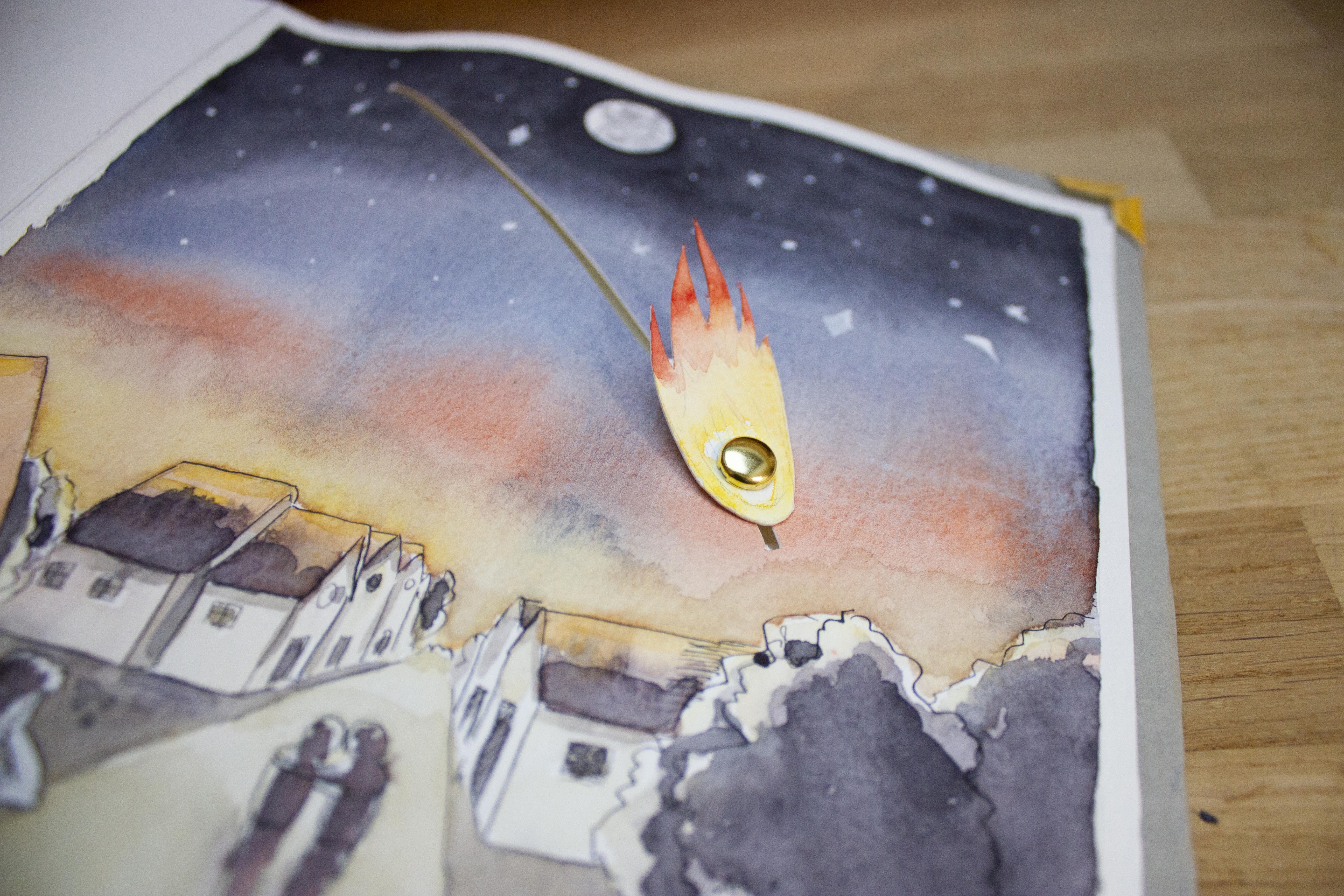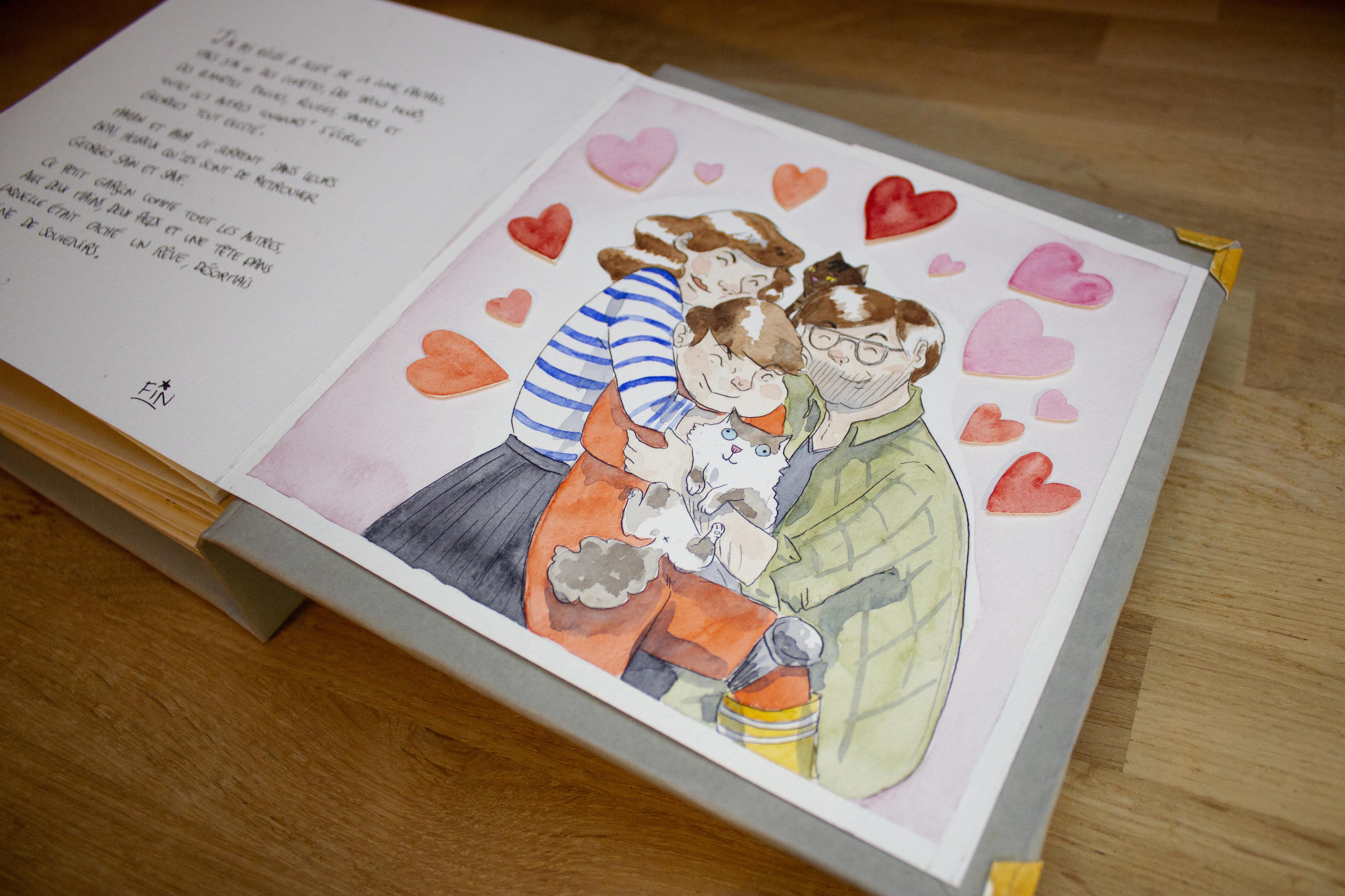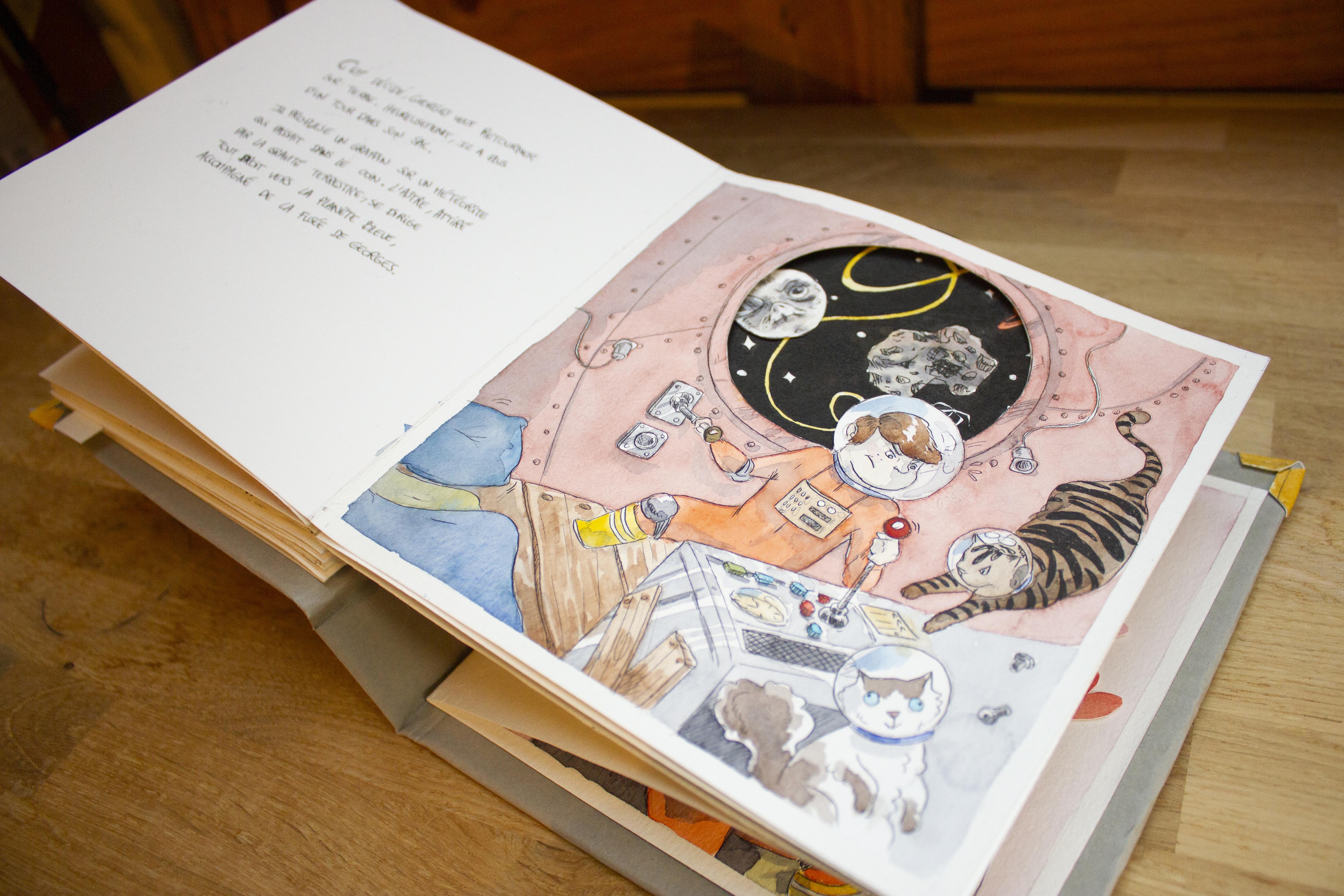 Ce livre en édition unique est entièrement réalisé à la main. Illustrations originales à l’aquarelle et montage papier donnent vie au petit Georges.