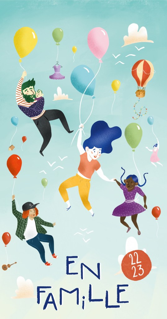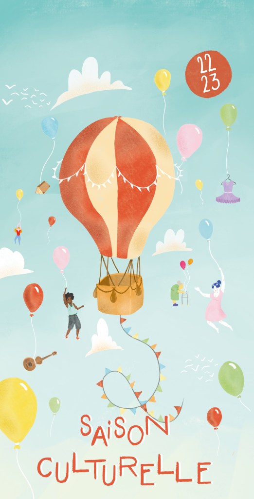 J’ai développé une piste graphique aérienne et poétique, la culture et la MJC comme symbole d’élévation et de découverte. La MJC souhaitait aussi laisser derrière elle ces deux années Covid, et pour ce faire, rien de mieux que de sortir les ballons multicolors et explorer le ciel dans une grande fêtes commune !