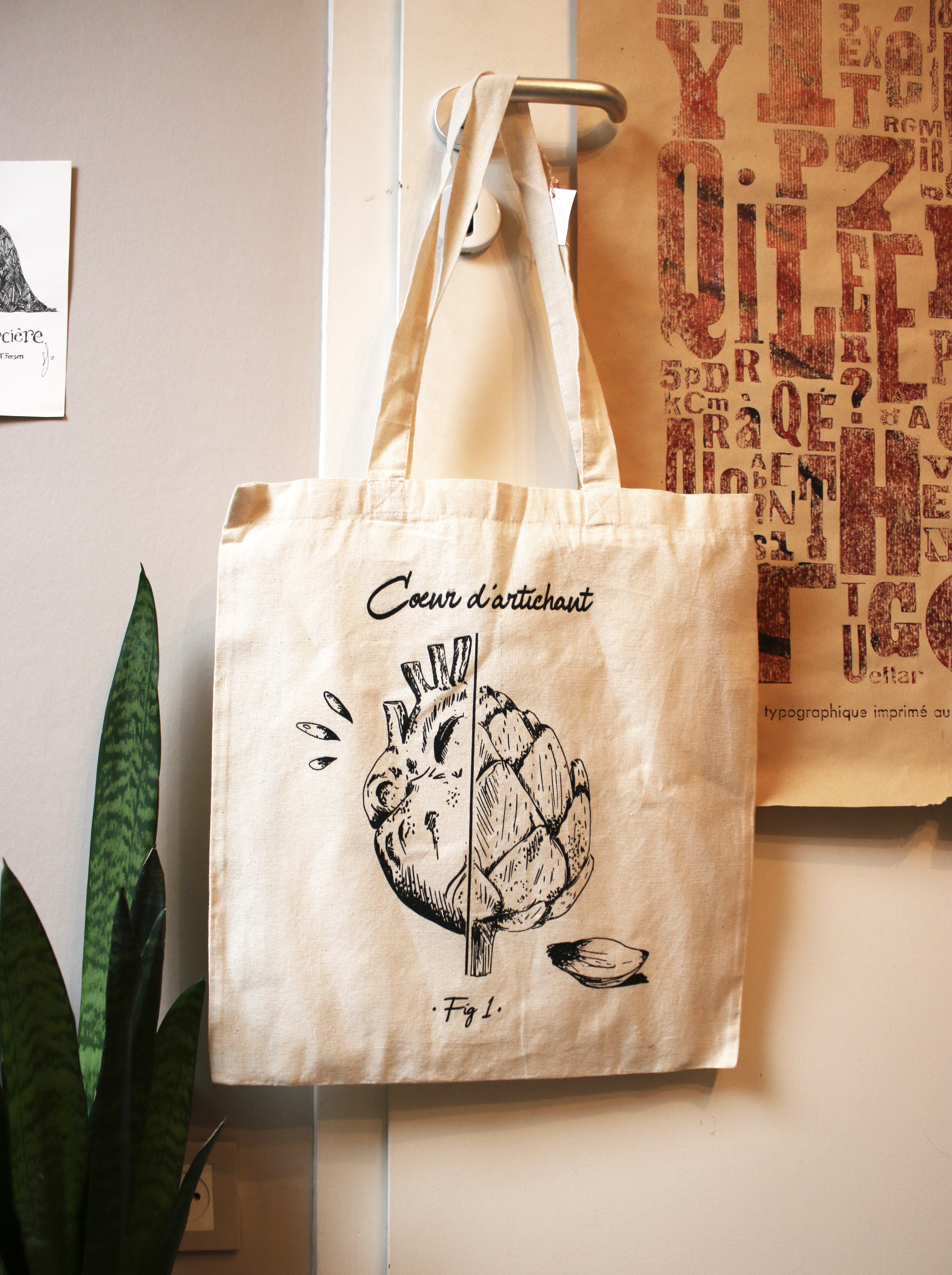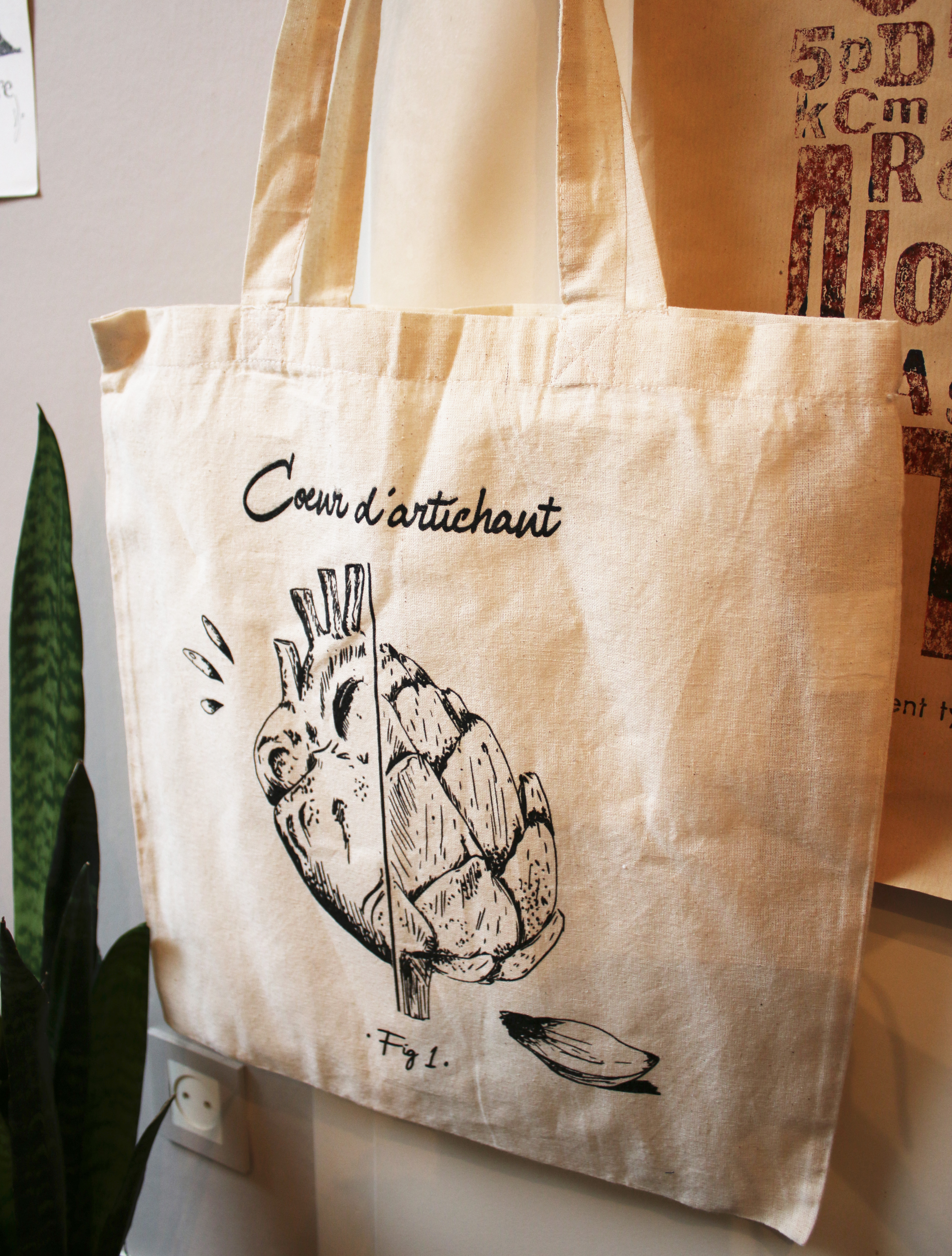 Création d’un tote bag avec une illustration originale sérigraphiée.